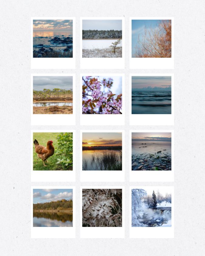 Kui otsid kodu või kontori interjööri täiustamiseks kvaliteetseid ja ainulaadseid pilte, oled jõudnud õigesse kohta. Samuti on ka kalendrid ning postkaardid imelised viisid omamaks ja kinkimaks ainulaadset ilu ja autoriloomingut, mille puhul tead, et see ei ole tulnud suurte tiraažidega vabrikutest.