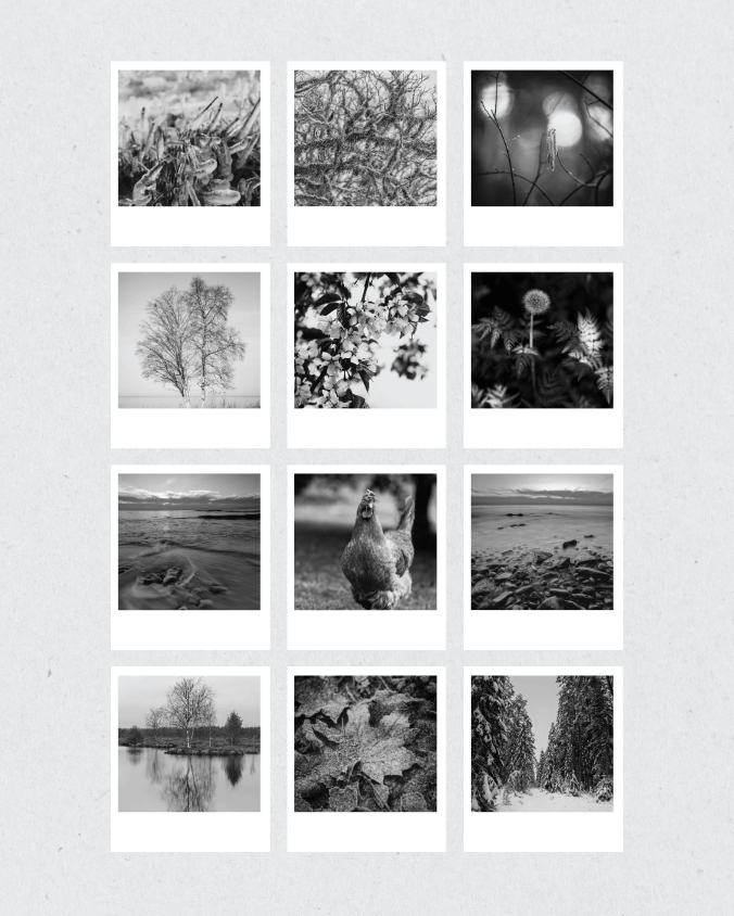 Iga kuu toob Sinuni ainulaadse hetke Eestimaa loodusest, jäädvustatuna ajatus mustvalges stiilis. Need pildid räägivad looduse lugusid detailides ja varjundites, mis värve ei vaja – valguse ja varju mäng loob ise täiusliku harmoonia.